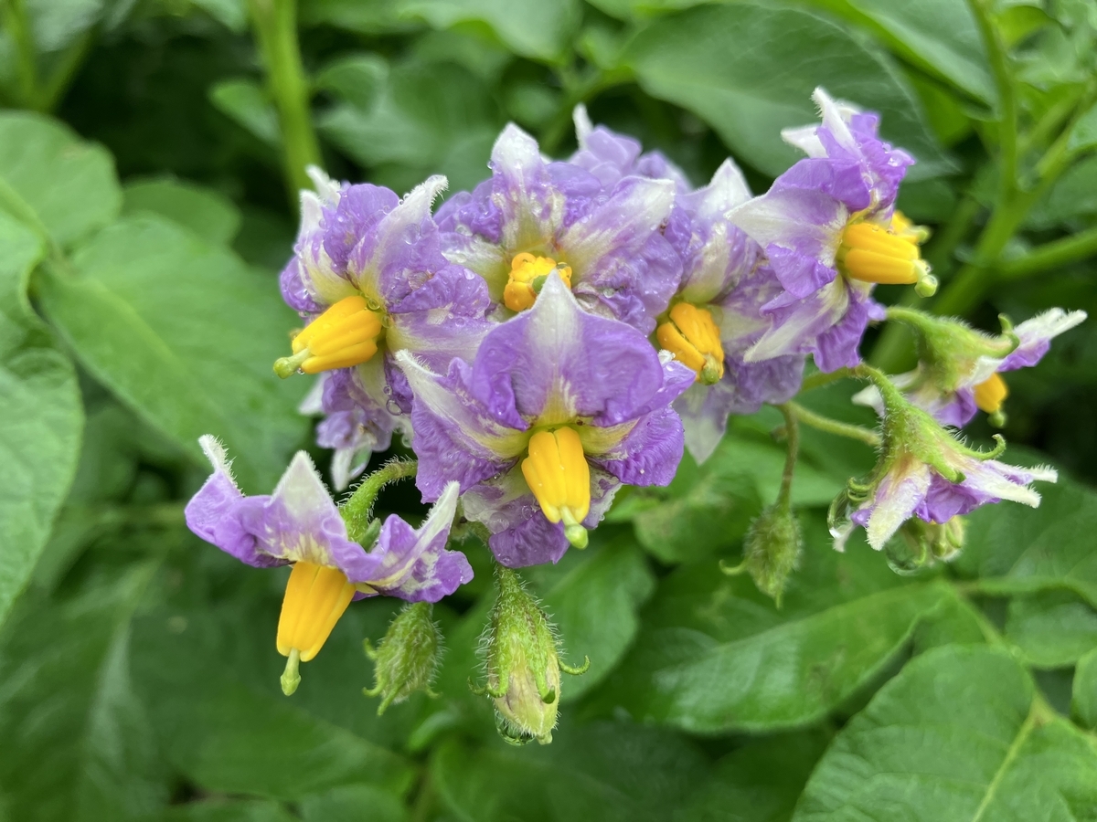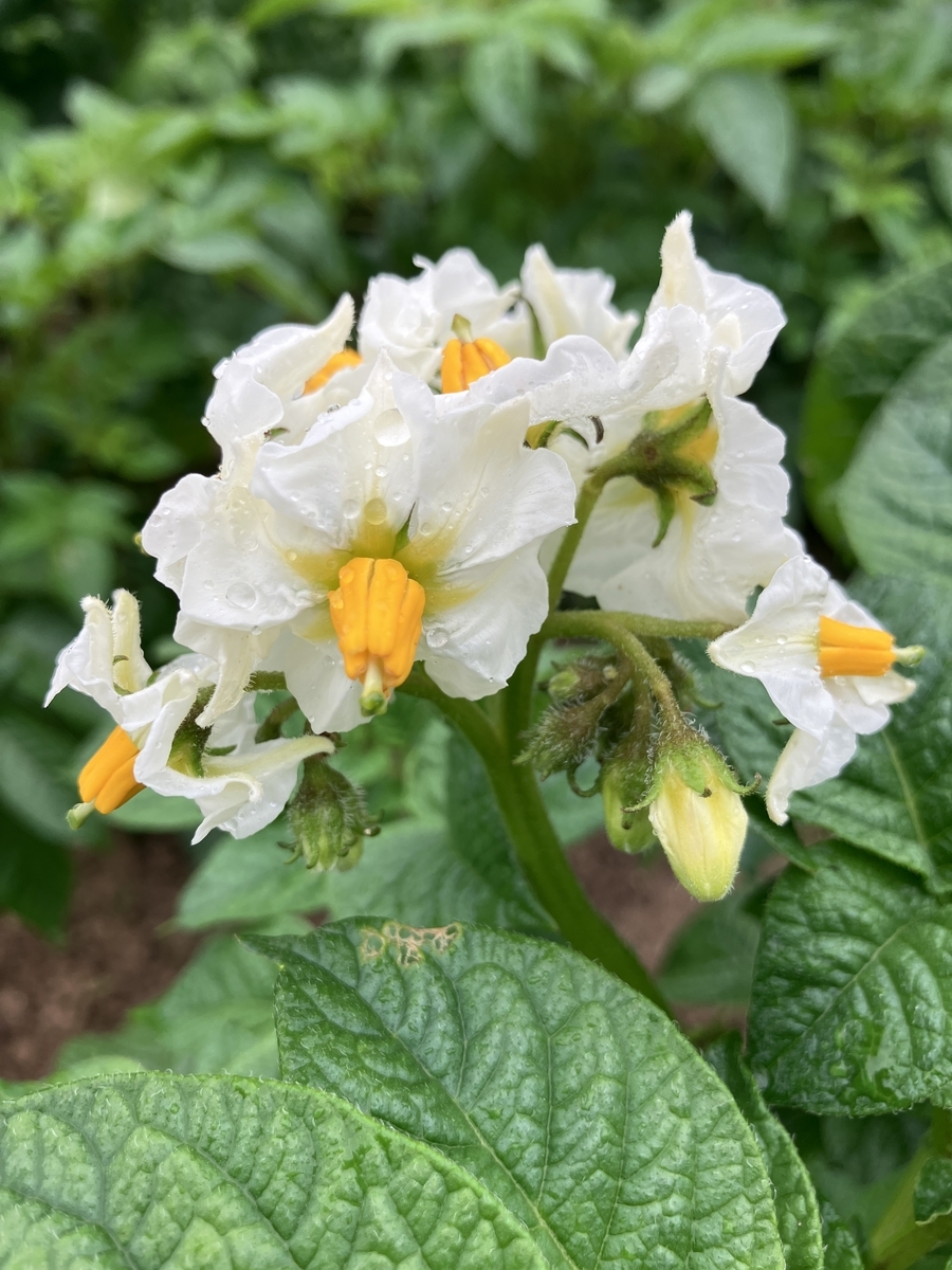 じゃがいもの花も枝葉もそれぞれに個性があって面白いです。
